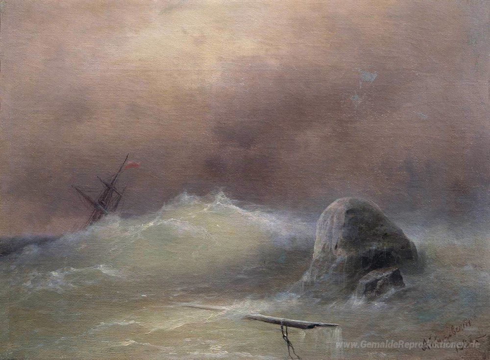 Wir bieten Ihnen eine handgefertigte Reproduktion auf Leinwand des berühmten Kunstwerks 'Stürmisches Meer' von Ivan Aivazovsky, aus dem Reproduktionsmuseum.