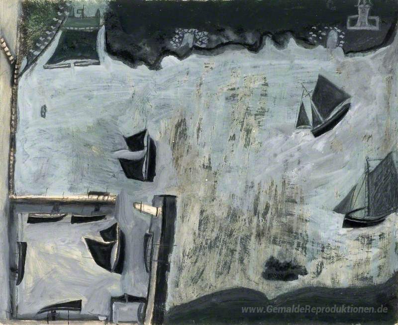 Wir bieten Ihnen eine handgefertigte Reproduktion auf Leinwand des berühmten Kunstwerks 'St Michael Berg Harbour' von Alfred Wallis, aus dem Reproduktionsmuseum.