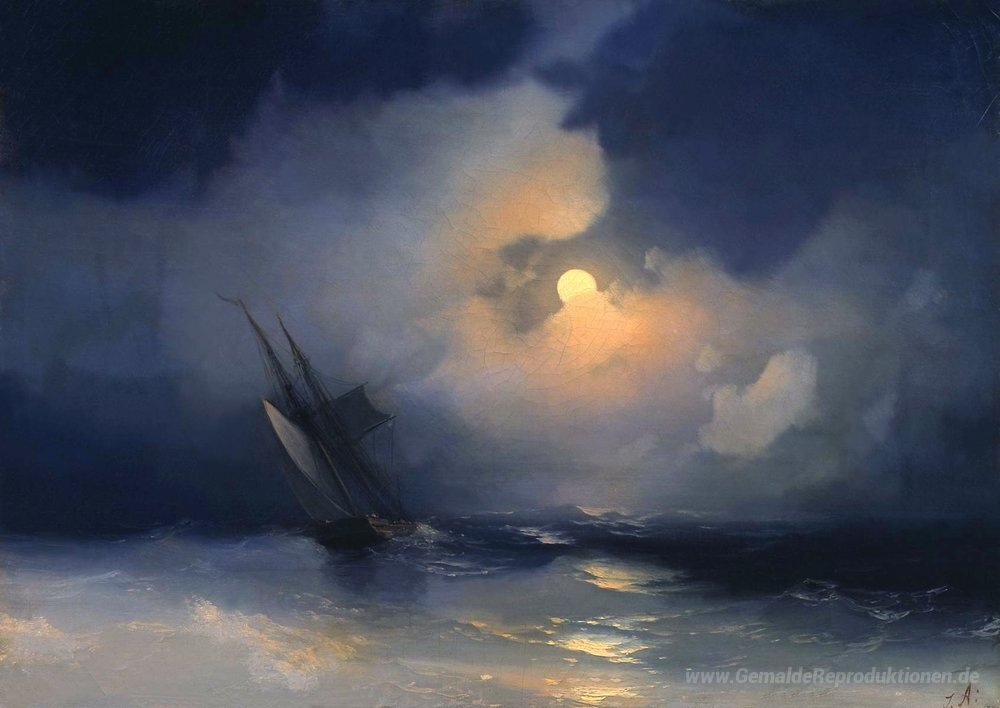 Wir bieten Ihnen eine handgefertigte Reproduktion auf Leinwand des berühmten Kunstwerks 'Sturm auf dem Meer auf einer Mondnacht' von Ivan Aivazovsky, aus dem Reproduktionsmuseum.