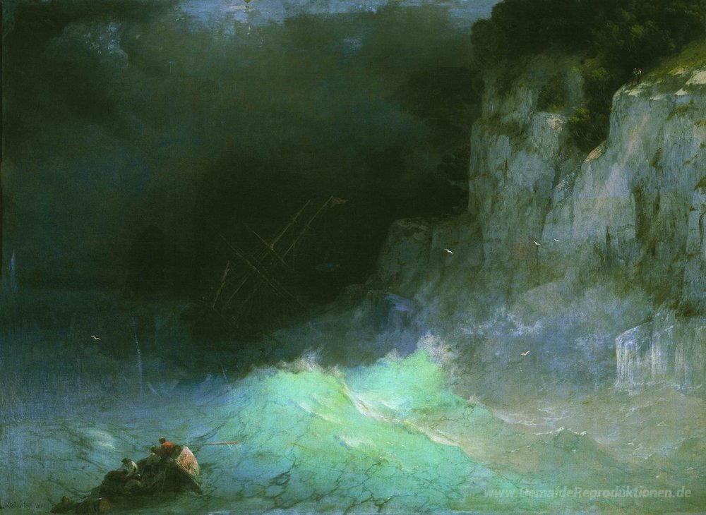 Wir bieten Ihnen eine handgefertigte Reproduktion auf Leinwand des berühmten Kunstwerks 'Sturm' von Ivan Aivazovsky, aus dem Reproduktionsmuseum.