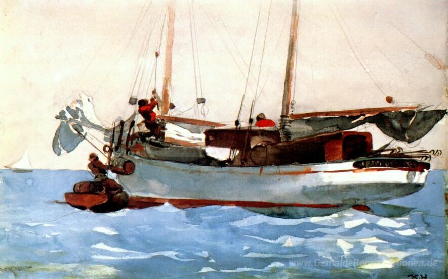 Wir bieten Ihnen eine handgefertigte Reproduktion auf Leinwand des berühmten Kunstwerks 'Taking auf nassen Bestimmungen' von Winslow Homer, aus dem Reproduktionsmuseum.