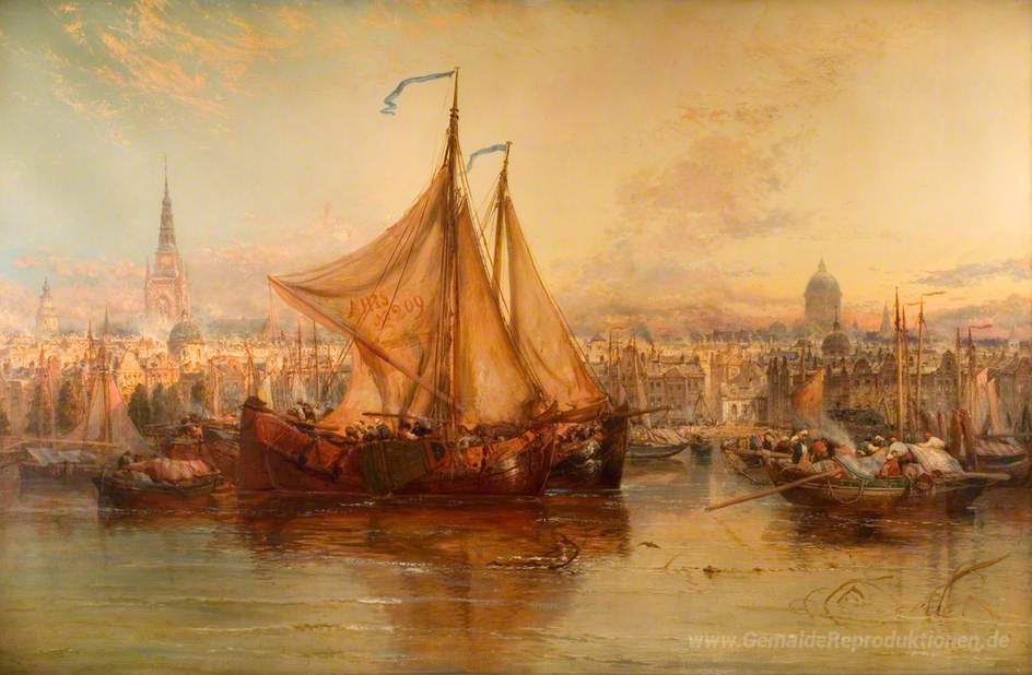 Wir bieten Ihnen eine handgefertigte Reproduktion auf Leinwand des berühmten Kunstwerks 'The Harbour, Amsterdam' von James Webb , aus dem Reproduktionsmuseum.