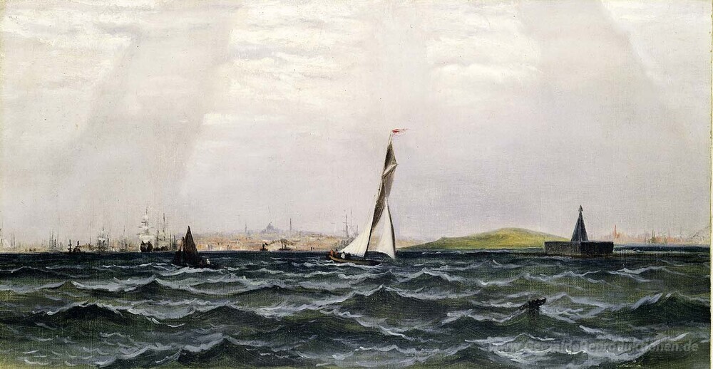 Wir bieten Ihnen eine handgefertigte Reproduktion auf Leinwand des berühmten Kunstwerks 'Untitled (Harbor Scene)' von James Hamilton, aus dem Reproduktionsmuseum.
