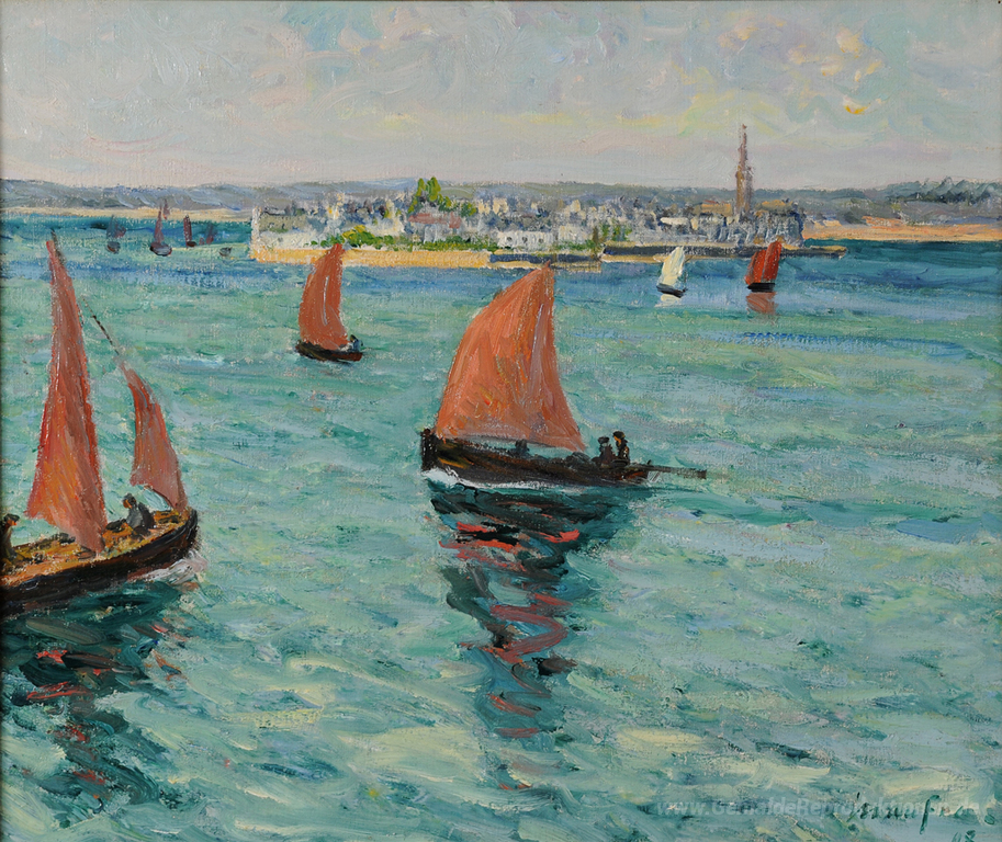 Wir bieten Ihnen eine handgefertigte Reproduktion auf Leinwand des berühmten Kunstwerks 'Vor der Insel Tudy' von Maxime Maufra, aus dem Reproduktionsmuseum.