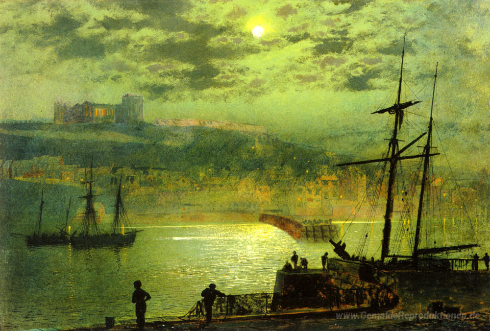 Wir bieten Ihnen eine handgefertigte Reproduktion auf Leinwand des berühmten Kunstwerks 'Whitby von Scotch Kopf' von John Atkinson Grimshaw, aus dem Reproduktionsmuseum.