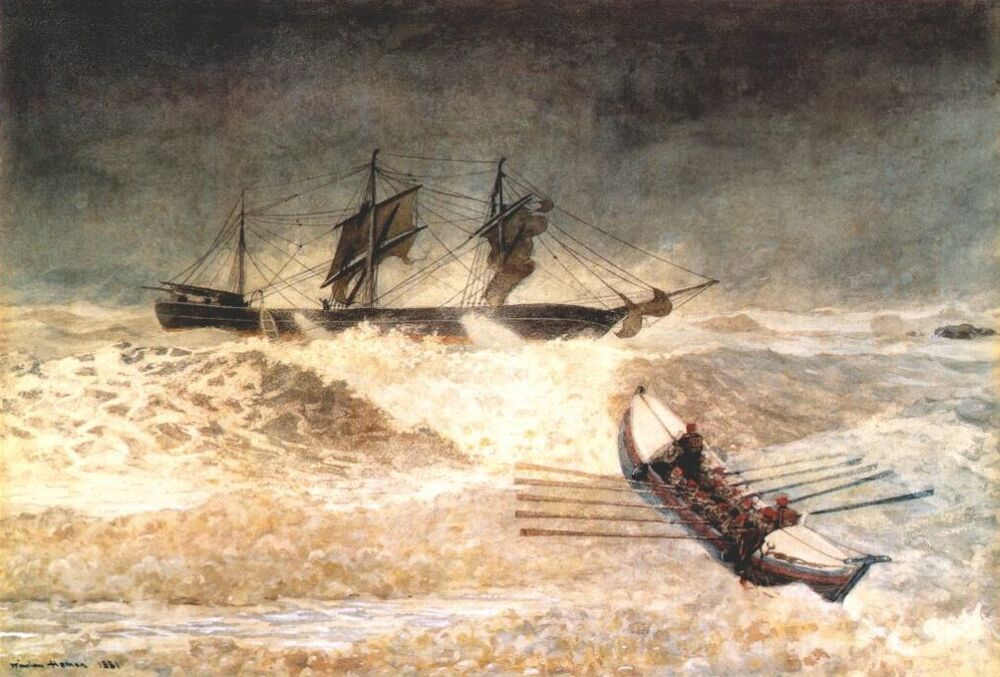 Wir bieten Ihnen eine handgefertigte Reproduktion auf Leinwand des berühmten Kunstwerks 'Wrack der Eisernen Krone' von Winslow Homer, aus dem Reproduktionsmuseum.