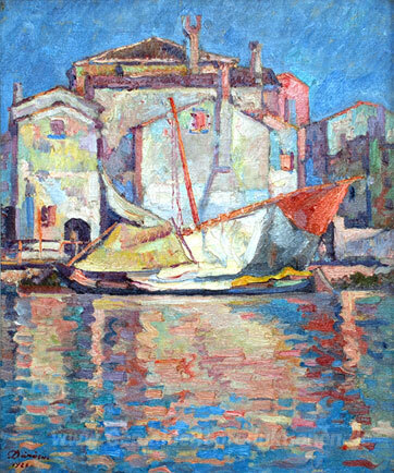 Wir bieten Ihnen eine handgefertigte Reproduktion auf Leinwand des berühmten Kunstwerks 'Yachthafen' von Nicolae Darascu, aus dem Reproduktionsmuseum.