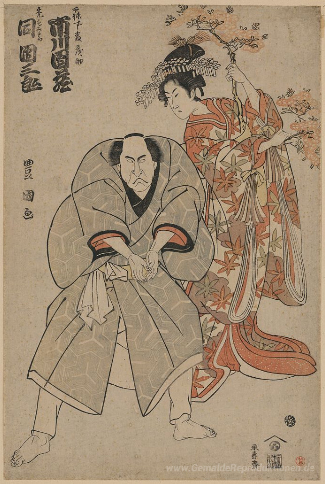 Wir bieten Ihnen eine handgefertigte Reproduktion auf Leinwand des berühmten Kunstwerks 'Die Schauspieler Ichikawa Danzo Und Ichikawa Danzaburō' von Utagawa Toyokuni, aus dem Reproduktionsmuseum.