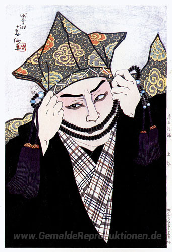 Willkommen in der faszinierenden Welt der Ölgemälde, wo jedes Kunstwerk eine Geschichte erzählt. Eines unserer herausragenden Meisterwerke ist Onoe Shoroku als Priester in Tsuchigumo von dem renommierten Künstler Natori Shunsen. Shunsen, bekannt für seine exquisite Beherrschung traditioneller Techniken, fängt mit lebendigen Farben und feinen Details die Essenz seiner Charaktere und Szenen ein.