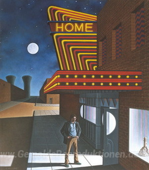 Wir bieten Ihnen eine handgefertigte Reproduktion auf Leinwand des berühmten Kunstwerks 'Zuhause' von Kent Bellows, aus dem Reproduktionsmuseum.
