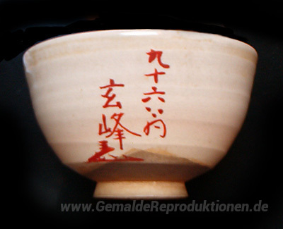 Wir bieten Ihnen eine handgefertigte Reproduktion auf Leinwand des berühmten Kunstwerks 'Lotus Tea Bowl' von Yamamoto Gempo, aus dem Reproduktionsmuseum.